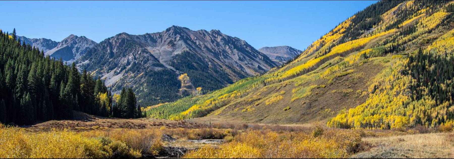 With aspen-ringed meadows of gold and alpine meadow backdrops, this trail is a popular one amongst locals and visitors in the fall. The hike features scenic bridges over Hunter Creek and breathtaking scenery throughout, with beautiful views of the forest, river, wildflowers, and wildlife. This hike can be made shorter by turning around at any of the scenic destinations along the way. You can also extend it connecting it to other nearby trails like Smuggler. Additional information is available at Aspen Trail Finder.